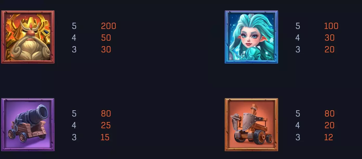 矮人國王基本上可以說是整台遊戲的核心角色,只要五個同時出現,最高可拿到 200 倍回報。這種等級的倍率不會天天來,但一旦碰到,往往就是整段遊戲的轉折點。很多玩家會把它視為「戰場勝利」的象徵,因為通常代表這台機器開始有回補力道。