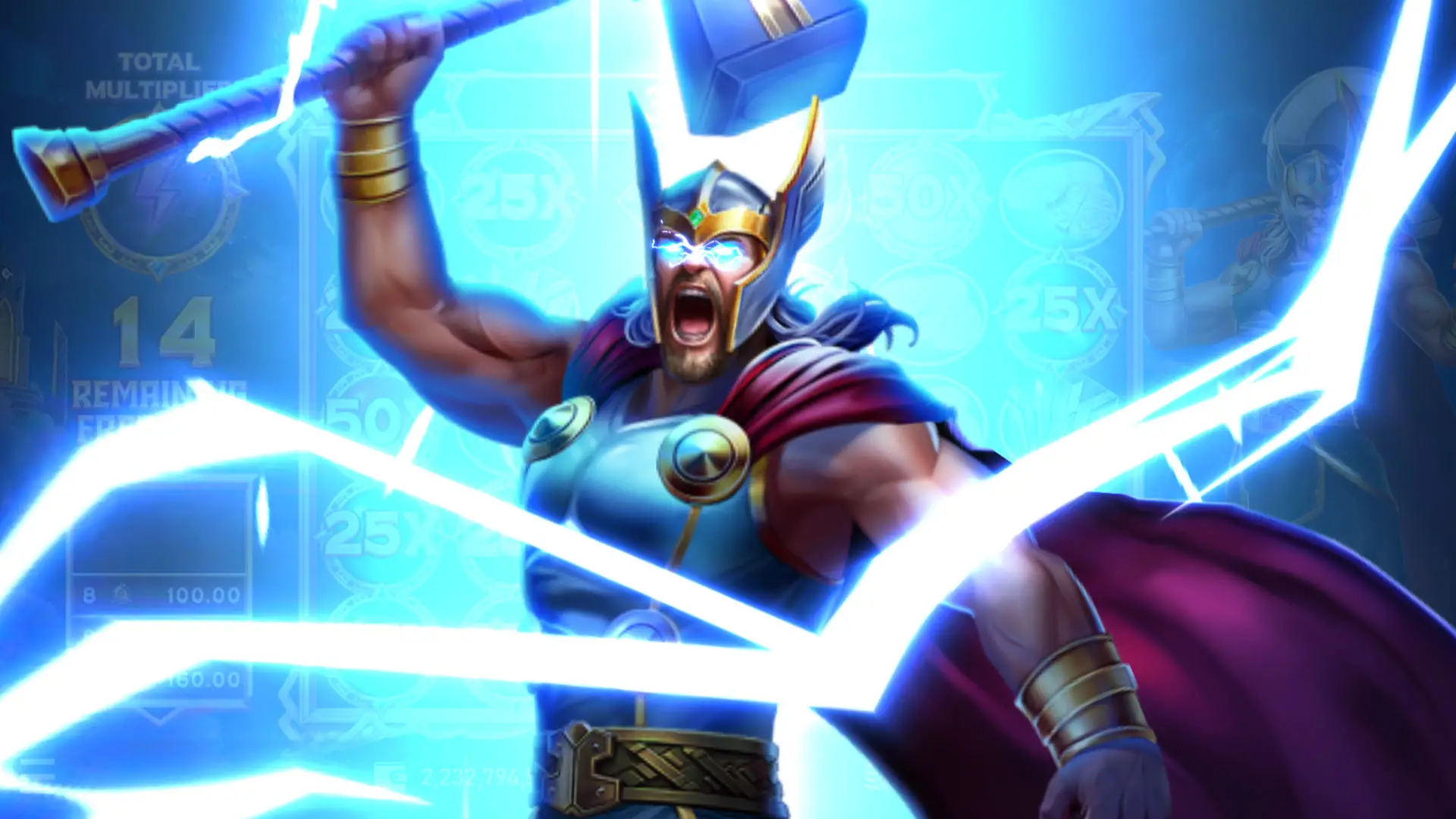 15 次變 100 次:進入免費模式後,如果又掉出 3 個免費圖示,雷神會再次揮動神鎚送你加碼 5 次,運氣好的話,最高可以一路疊加到 100 次,轉到你手軟。