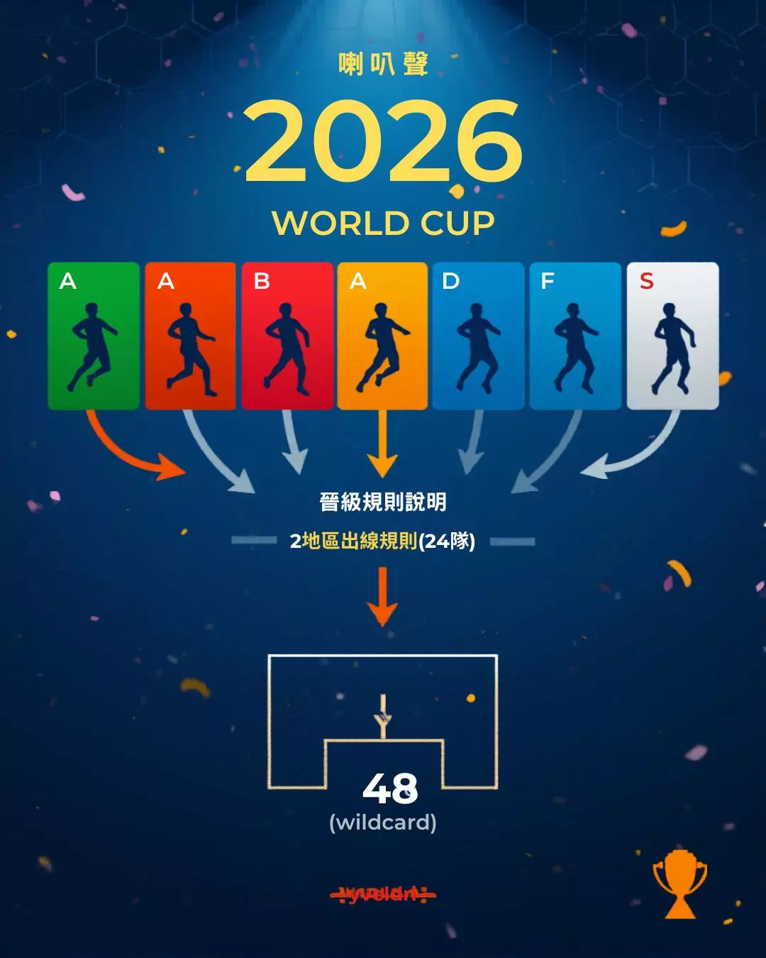 2026 年的世界盃因為擴編到 48 隊,賽程會拉得更長,比賽場次也會從 64 場暴增到 104 場!這意味著我們有更多的爆冷機會可以看,有更多的黑馬可以期待。