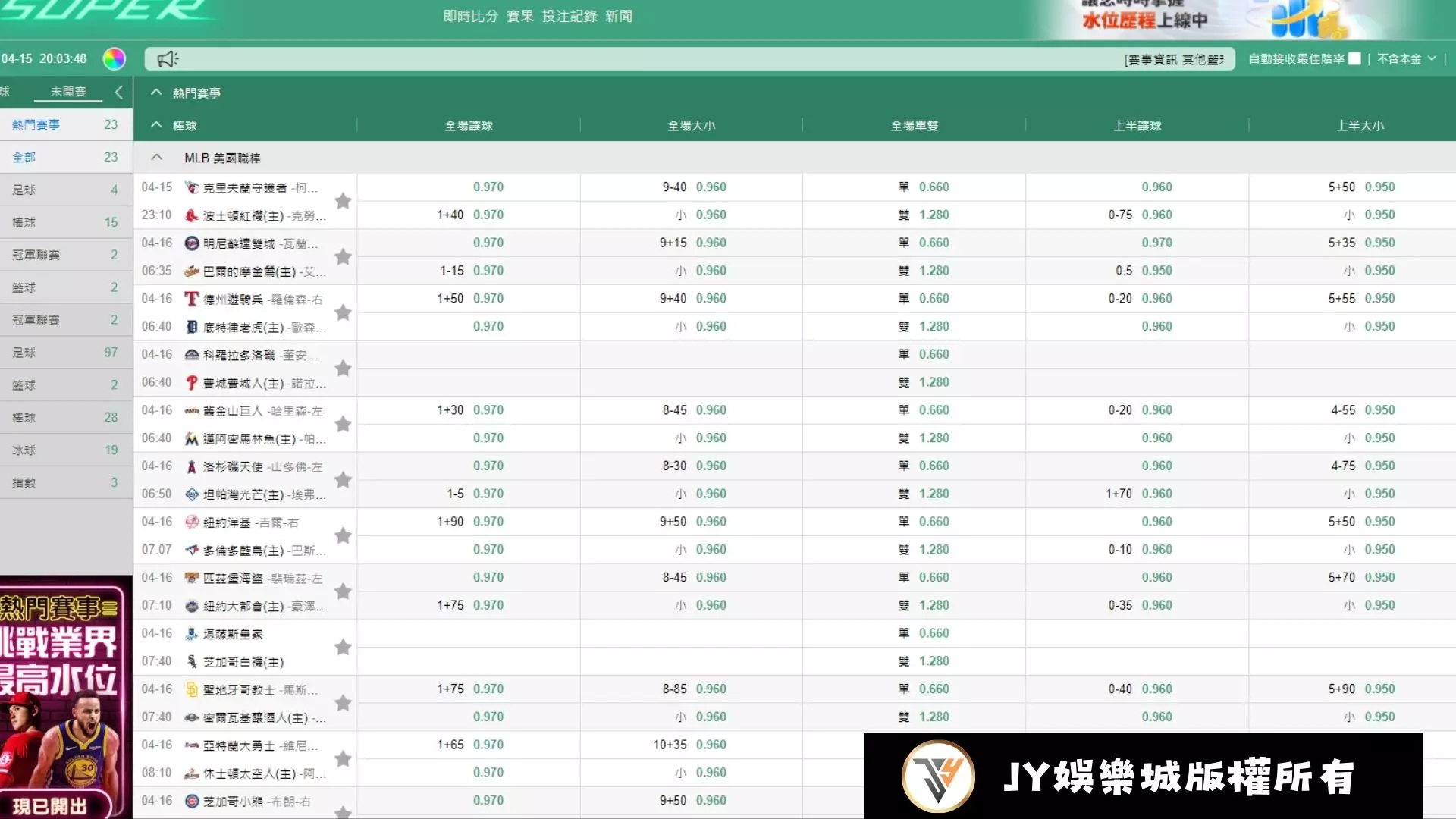 半場/全場投注:投注比賽的半場或全場結果,可以分開投注或連結投注。