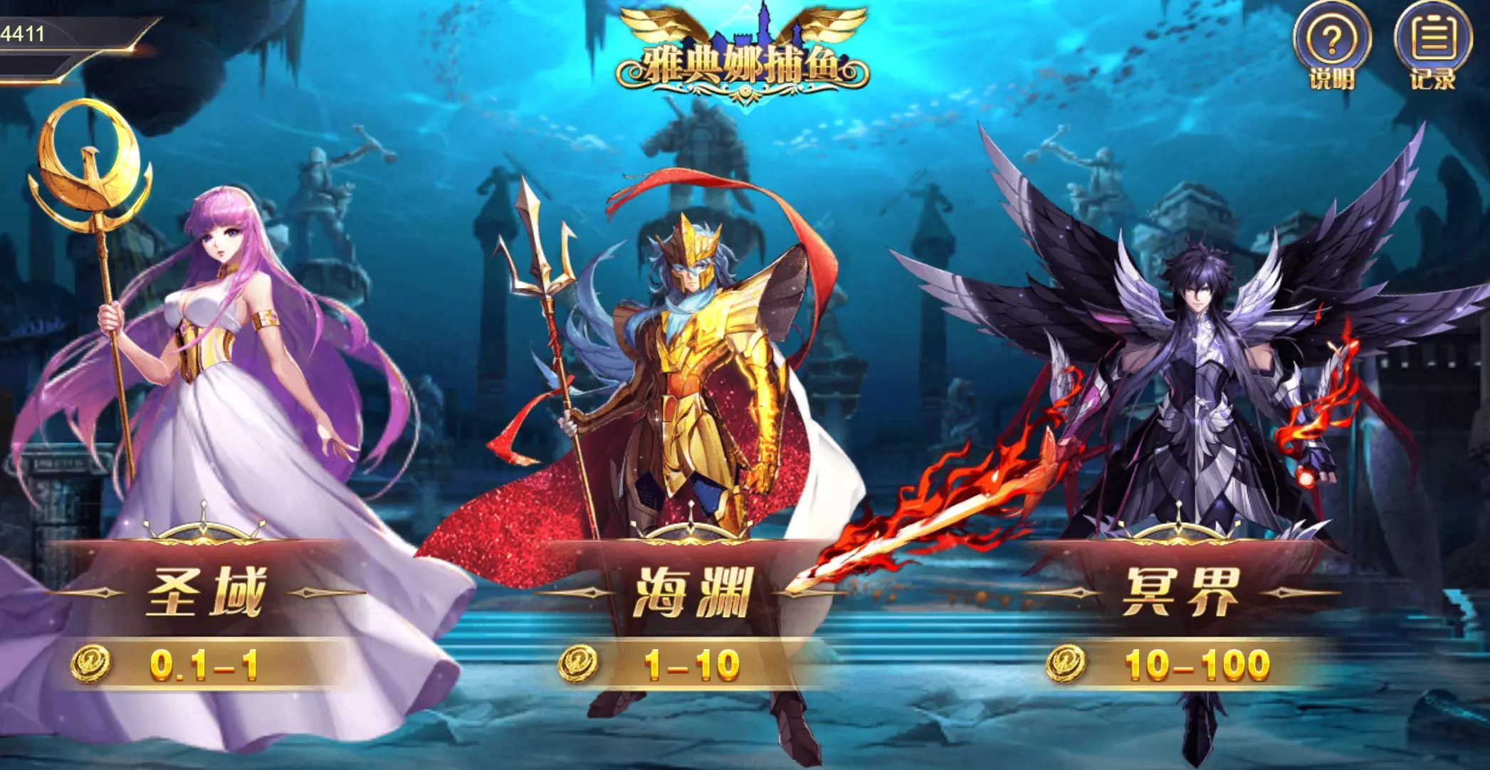 雅典娜捕魚分為三大主題,建議玩家可以先從小額的投注來下注,分為聖域、海淵和冥界,聖域的投注金額只要 0.1 至 1 元,是夢幻柔美的主題,以神聖莊嚴為主題,海淵的投注金額介在 1 至 10 元,以海洋神話為主題,讓玩家在悠游海底世界的同時更多了些額外的趣味,更富有刺激性,而冥界的投注金額則在 10 至 100 元,與海淵和聖域風格不同,以暗黑系為主,符合冥界的主題,帶給玩家們一種神秘的感覺。