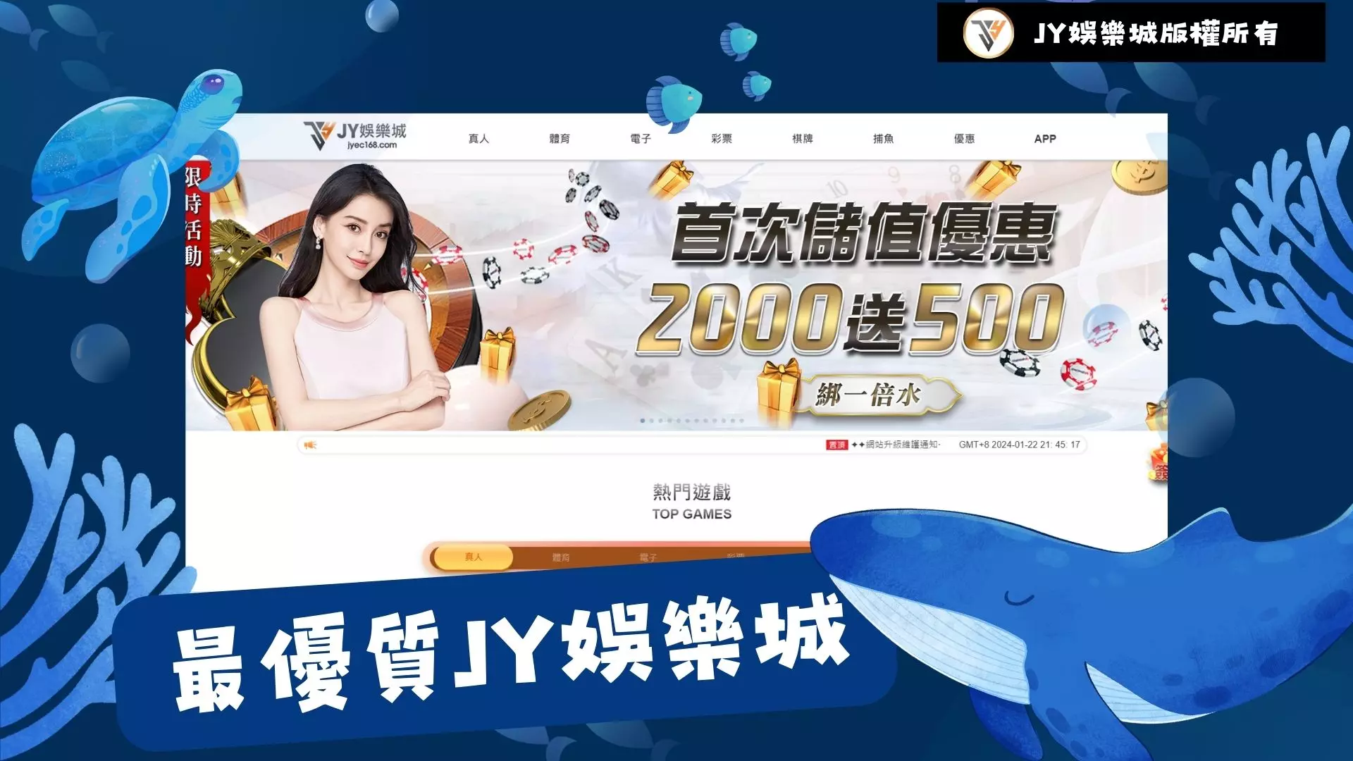 人家說挑魚不如挑魚商,買菜不如找菜商,玩捕魚機不如找優質的娛樂城,一款捕魚機能熱門能受歡迎,不僅僅是遊戲的玩法搭配上迷人好玩,除此之外還許許多多優質的娛樂城好康活動等著你來賺,那這間平台到底有多麼好呢?接下來讓你一起來認識這間JY娛樂城捕魚機有多優秀吧!