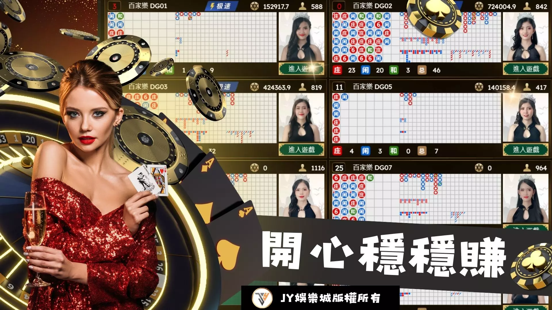 看完以上幾個百家樂賺錢投注法之後,知道要怎麼投注了吧?那想知道要去哪裡投注嗎?那就來JY娛樂城吧!在這間平台當中百家樂的玩法路單走向我只能說真的很好走!要長龍常常在長,單跳或者兩廳房的路常常穩穩再走,基本上你不用去看那些奇奇怪怪的群組也可以在JY娛樂城賺錢,趕緊一起來這個平台體驗賺錢人生吧!