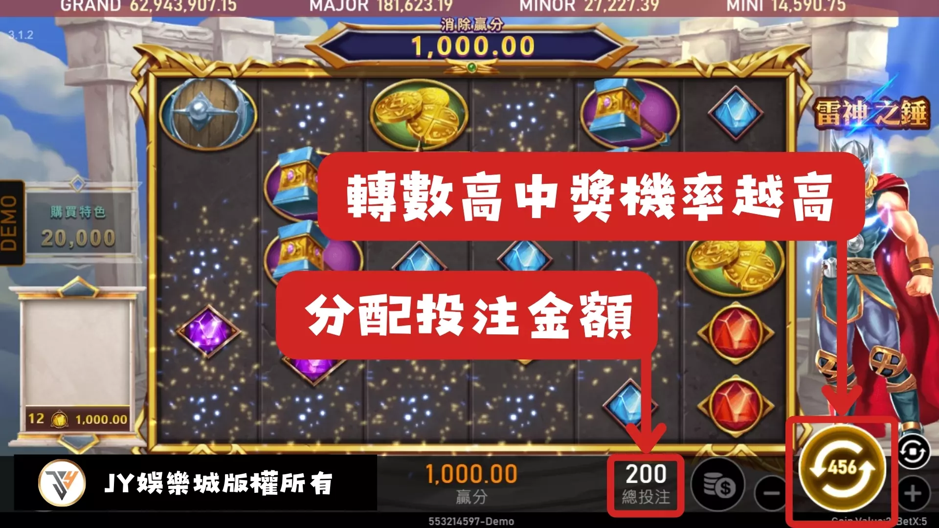 這是老虎機遊戲中最重要的技巧之一,就是以小博大。在眾多老虎機中,像是RSG雷神之槌老虎機就是典型的高賠率玩法的代表。這些機台的賠率相對較高,因此贏得一場可能相當於頂輸十場的贏分。如果你不想被一般的吃錢老虎機一層層磨掉本金,那麼選擇這樣的高賠率機台是相當明智的選擇。