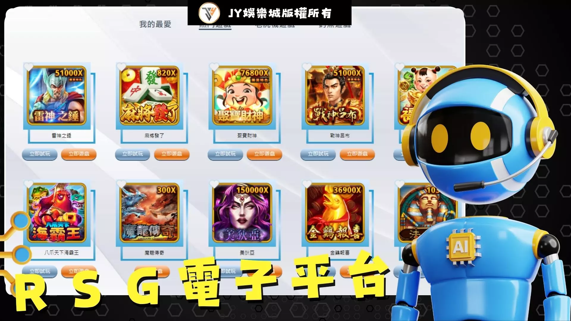 而今天小編要先介紹一間優質平台,這間優質平台就叫做rsg 電子遊戲平台,由JY娛樂城公司推出來的一系列電子遊戲玩法,在這間rsg 電子平台當中有著各式各樣不同種類型的電子遊戲,像是老虎機以及釣魚遊戲兩大類型讓你可以在這邊遊玩,而這些玩法每一款都可以搭配JY娛樂城的優惠好禮活動,來去搭配遊玩,只要你遊玩電子遊戲玩法,讓你可以享受其中的特別樂趣,體驗最賺錢的rsg 電子遊戲平台喔!