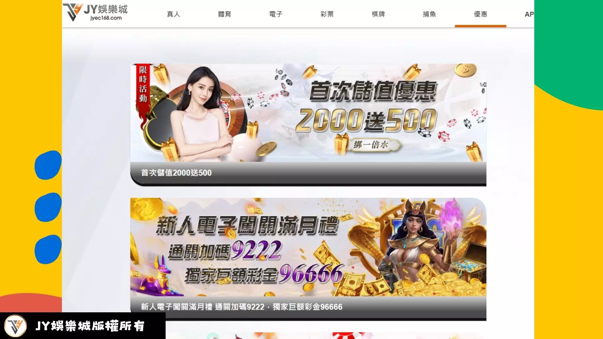在 2024 rsg皇家電子當中,目前本身就有中獎倍率的大幅提升,又剛好跟JY娛樂城有合作,等於目前擁有超多種不同的遊戲體驗玩法,像是首儲優惠、JY龍年投注送大獎、越存越富好禮、全館電子每日多反水、簽到送好禮等等多種活動,這些都為玩家提供了更多贏取獎品的機會和多樣化的娛樂選擇。