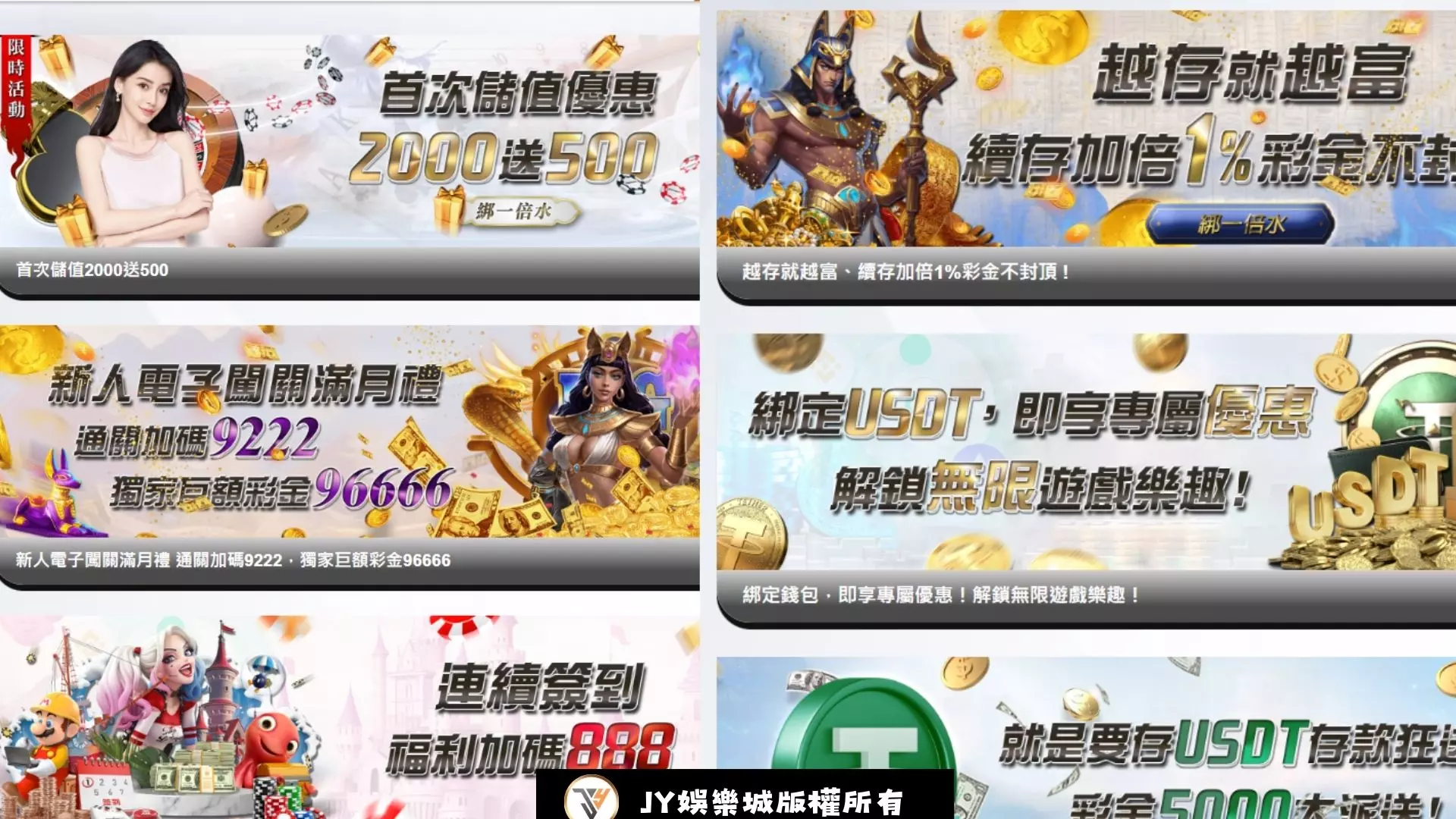在這個JY娛樂城的RSG戰神呂布測試機台中,最特別的就是這一間平台有著超級多的優惠活動等著你來賺,再這個平台中,有多種福利讓你可以開心賺!好禮為下: